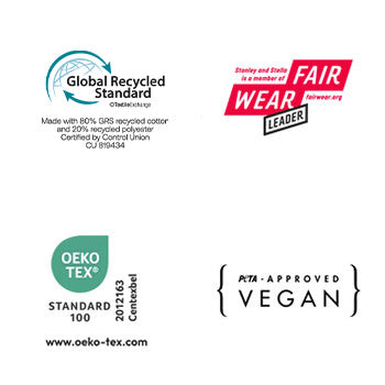 Wir sind stolz darauf, Ihnen eine zertifiziert hochwertige und vor allem nachhaltige Produktion gewährleisten zu können! Fair Wear für konstant faire Arbeitsbedingungen, PETA Approved Vegan für tierfreie Materialien, Oeko Tex für schadstofffreie Stoffe und